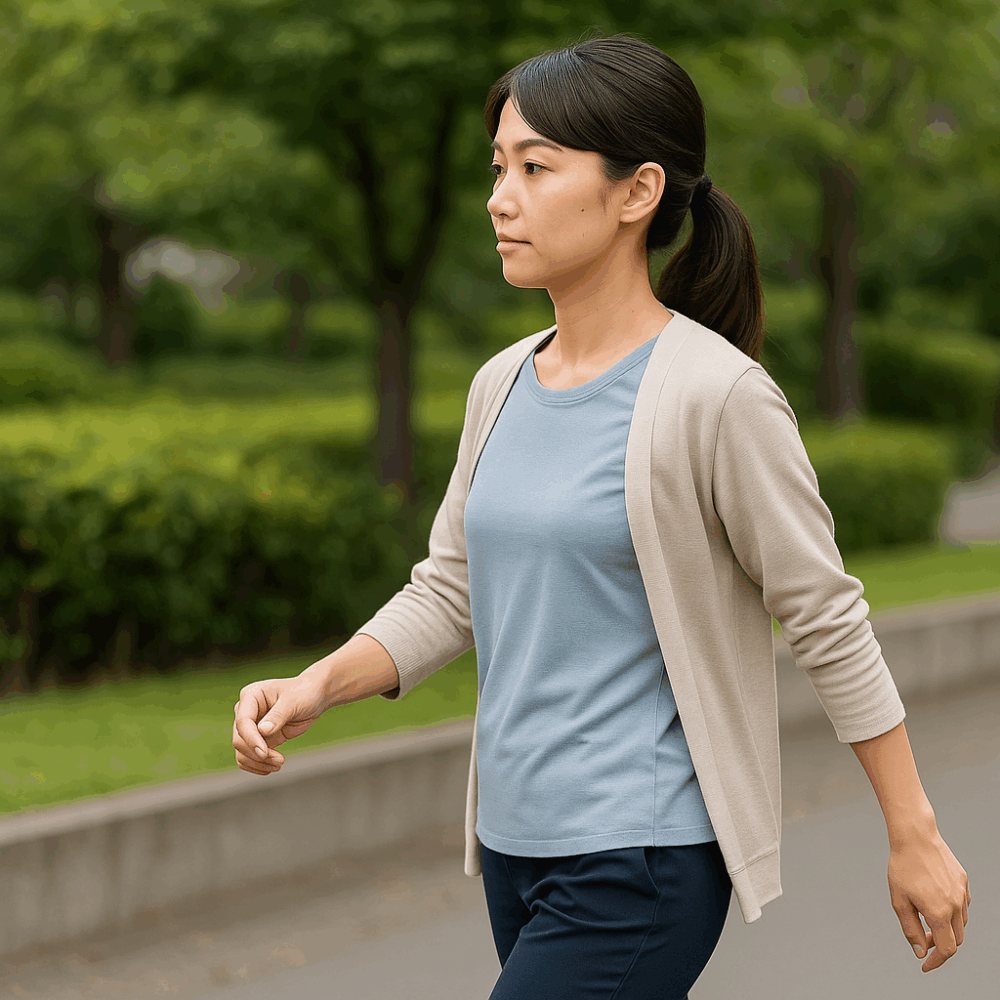 膝への負担は、普段の姿勢や歩き方のクセに大きく左右されると言われています。猫背や反り腰のまま歩くと膝関節に過剰なストレスがかかり、音や違和感の原因になりやすいです。意識的に背筋を伸ばし、つま先からかかとへスムーズに体重を移す歩き方を心がけるとよいでしょう。