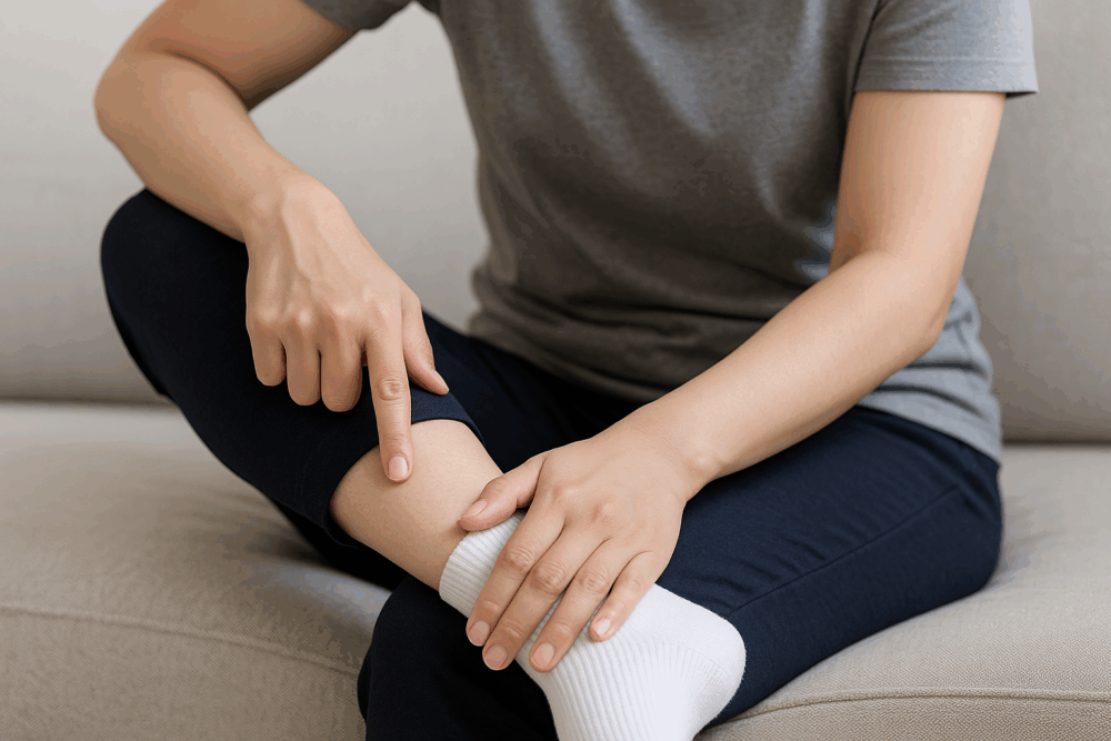 足首靭帯損傷のセルフチェックで最も分かりやすいのは「圧痛点」の確認だと言われています。外くるぶしの下や前側を軽く押したときに強い痛みが出る場合、前距腓靭帯に負担がかかっている可能性があると考えられています。内くるぶし周辺を押したときに痛みがある場合は三角靭帯に影響しているケースもあるようです。