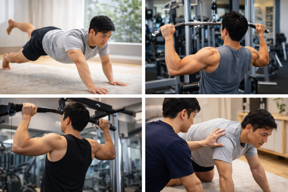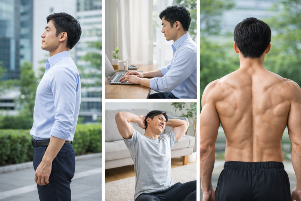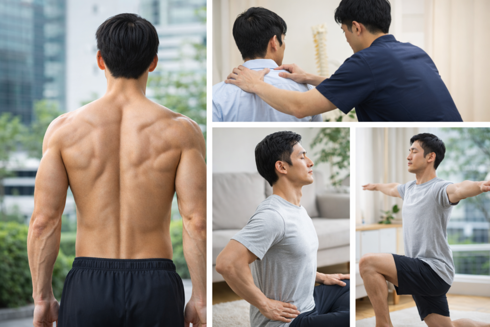 いわゆる逆三角形や背中の“厚み”は、特別なトレーニングだけでなく、姿勢や日常動作の積み重ねでも差が出やすい部分です。当院では、セルフケアとして呼吸と姿勢を組み合わせた簡単な動きから始める方法をお伝えしています。