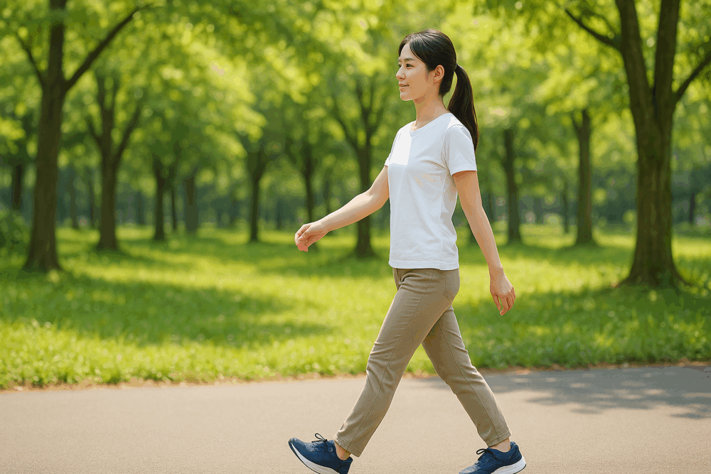歩く際は、歩幅を少し狭め、つま先と膝を正面に向けて歩くことが股関節に優しい歩き方となります。片足に体重が寄るクセがある方は、左右均等を意識することで負担を減らしやすくなります。