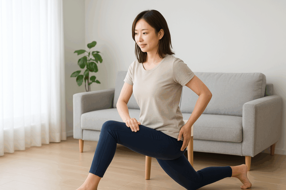 股関節や太もも周りを軽く動かすストレッチを、1日数分取り入れるだけでも違いが出てきます。特にお風呂上がりや体が温まっている時は、筋肉がゆるみやすく、伸ばしやすいためおすすめです。