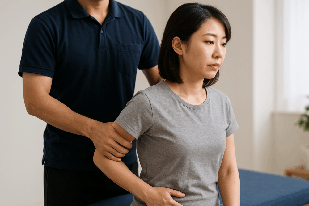 「なるほど…なんとなく心当たりがあるかも」と思われた方もいるかもしれません。ただ、セルフチェックはあくまで参考ですので、気になる場合は当院で全身の動き方や呼吸の癖などを一緒に確認しています。