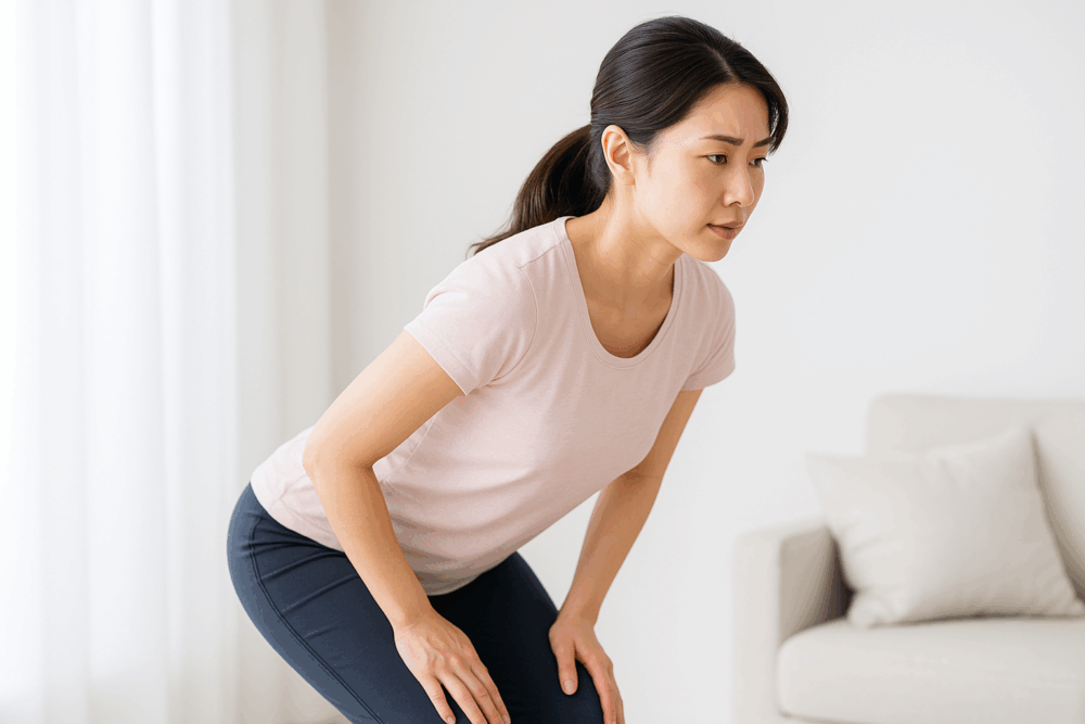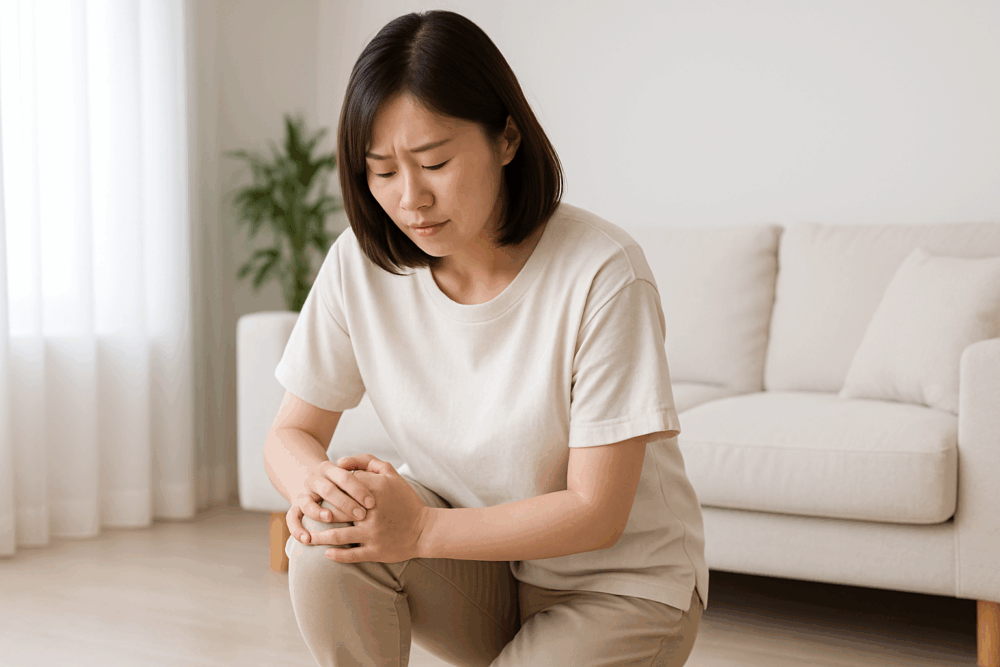 生活の中には、半月板へ負担が集中しやすい動きが潜んでいます。特に気を付けたいのが、深いしゃがみ込みや正座など、膝を深く曲げた姿勢です。和式生活で床から立ち上がる動作も膝にねじれが生じやすく、違和感につながる場合があります。さらに、階段を急いで駆け上がる、方向を変えながら歩くクセがある方も膝に負担がかかりやすいです。