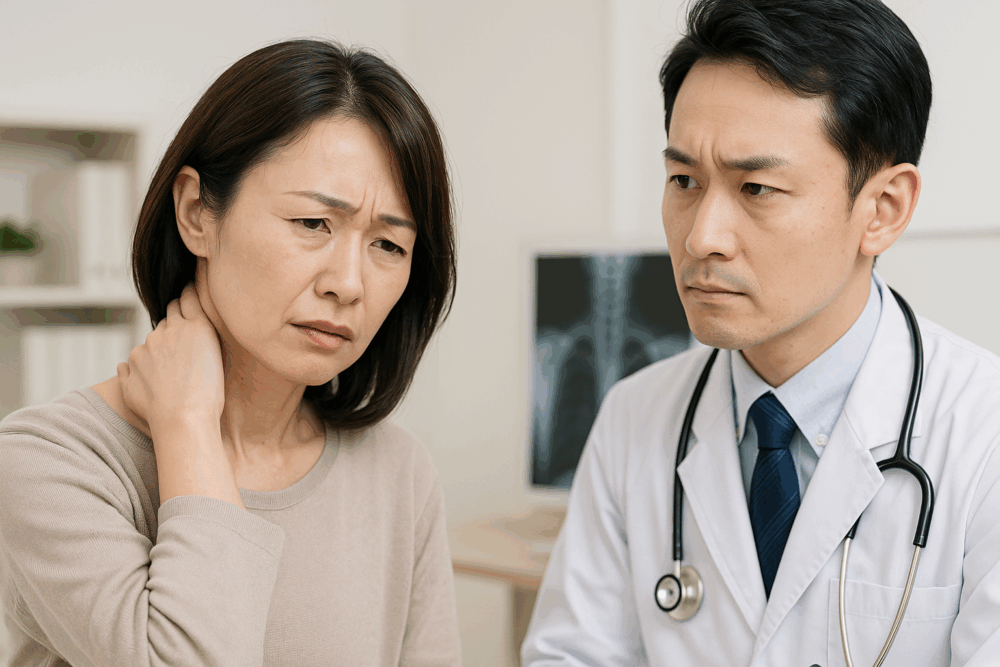 これらの症状は、筋肉のこりだけでなく「神経への圧迫」が関係している場合もあるため、我慢せず早めに専門医に相談することが大切です。