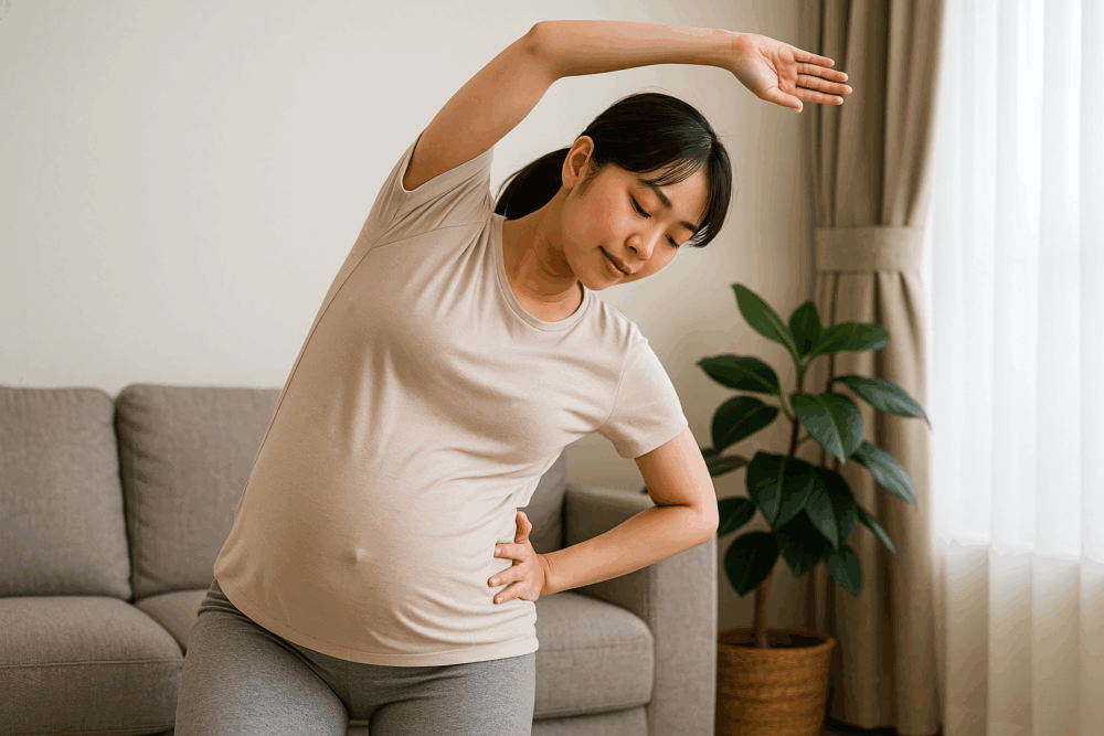 妊娠中は骨盤周囲の筋肉や関節が緩みやすく、腰痛の原因になりやすいです。簡単なストレッチや軽い体操で筋肉の緊張を緩めると、動作が楽になります。当院では、妊婦の体に負担の少ない安全なストレッチや、骨盤ベルトの使い方もアドバイスしています。