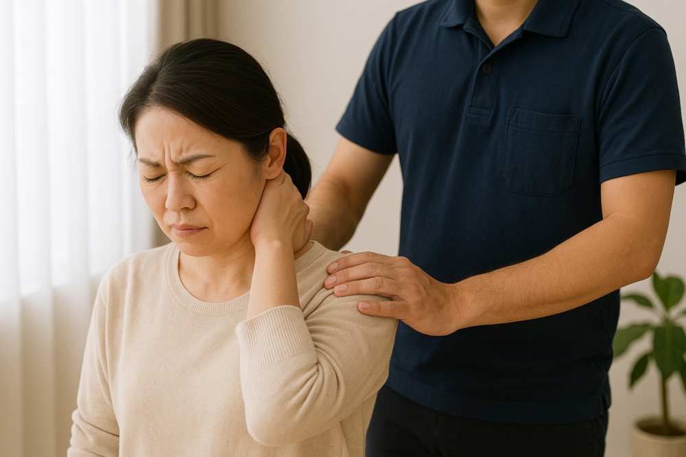 施術のあとは、家でできるセルフケア(呼吸の整え方・胸を開く軽い動作など)もお伝えします。無理なく続けられる内容を中心にし、痛みの戻りを減らすことを目的としています。