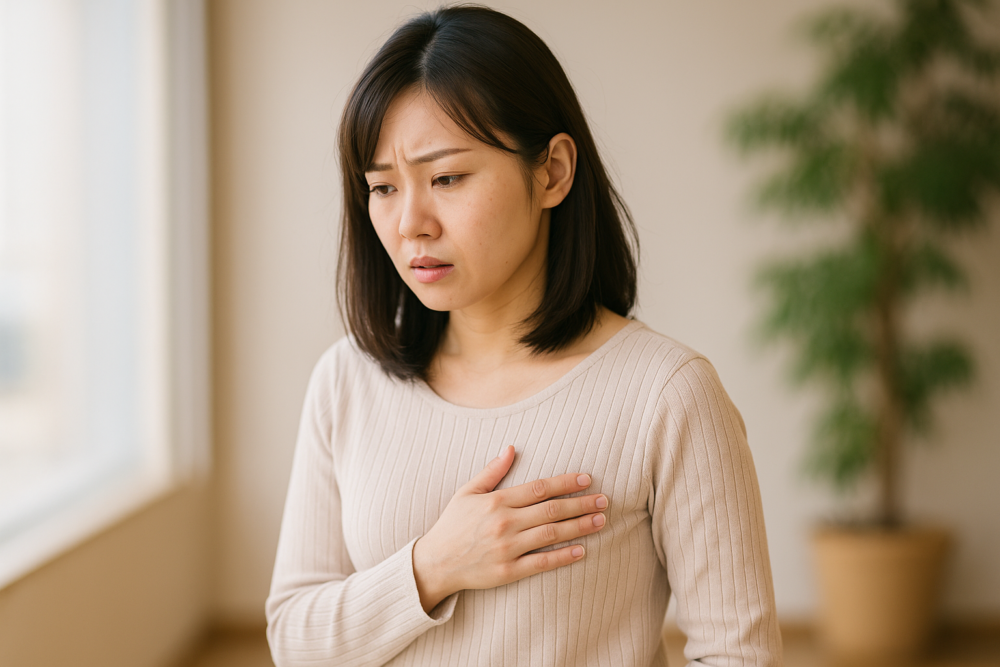 右胸だけ痛むと不安になる方が多いですが、女性の場合はホルモンの周期や姿勢のクセが重なりやすいため、片側だけ違和感が出るのは珍しくないと言われています。ただし、張りが続く・しこりがある感じがする・じっとしていても強まる、といった場合には早めに相談してほしい状況もあります。