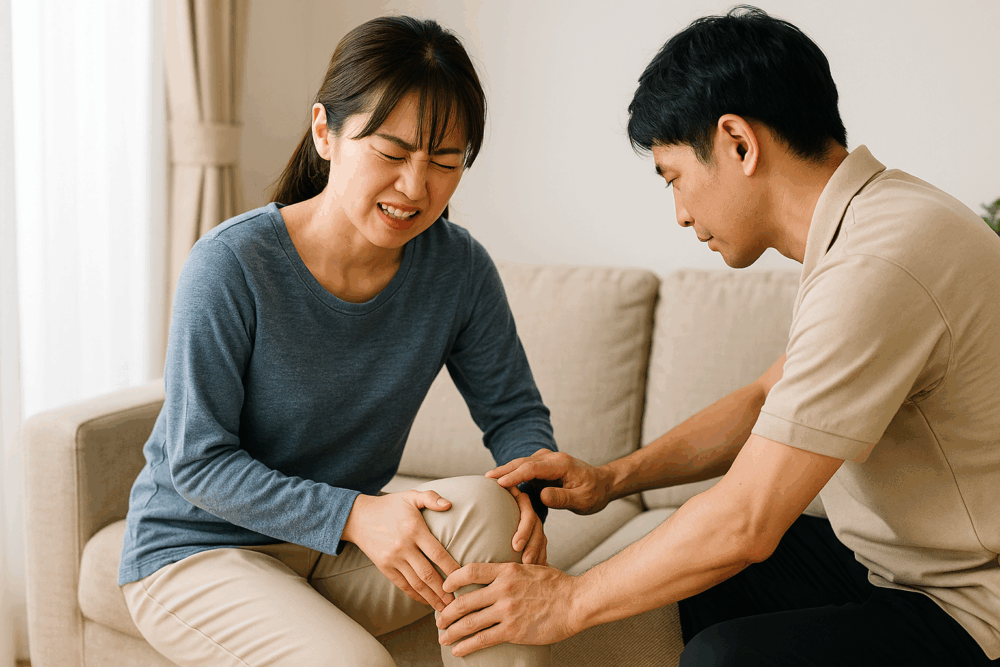 「立ち上がると付け根が詰まる感じがする」と表現されるケースでは、血行不良や筋肉の疲労、体の歪みが関係していることが多いようです。股関節の動きが硬いまま使い続けると、循環が滞りやすくなるとも言われています。当院では骨盤・股関節の位置を丁寧に検査し、必要に応じて内臓の位置や呼吸のクセも確認します。日常的には、座り姿勢を整えたり、股関節を軽く動かす体操を取り入れることを提案しています。