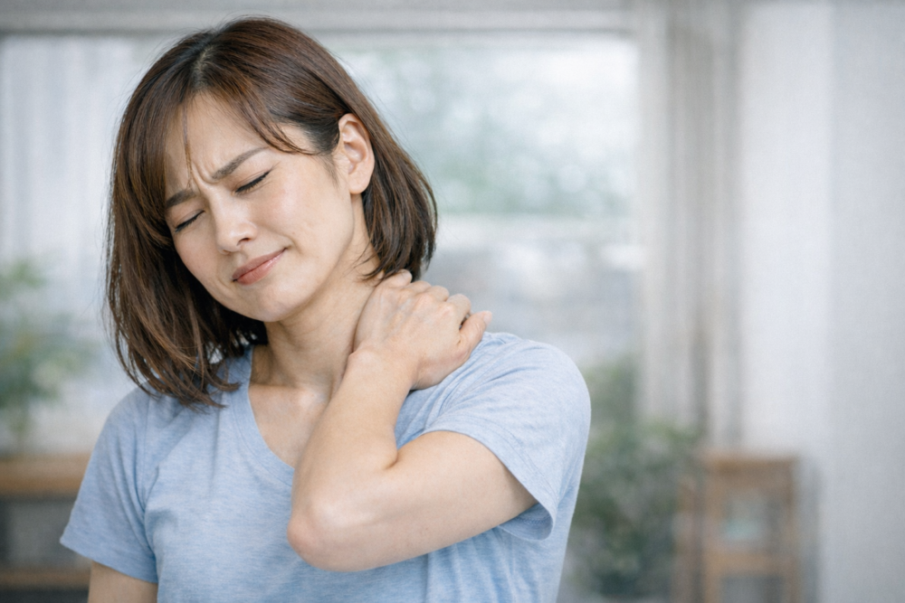 「運動不足も関係ありますか?」と質問されることもあります。長時間同じ姿勢で過ごしたり、スマホを見る時間が増えたりすると、首や肩まわりの筋肉が固まりやすくなるそうです。そこに睡眠不足やストレスが重なると、体の緊張が抜けにくくなることもあると言われています。